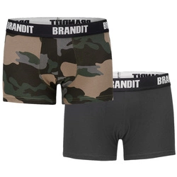 Brandit - Bokserki męskie Logo - dwupak - ciemny kamuflaż/czarny