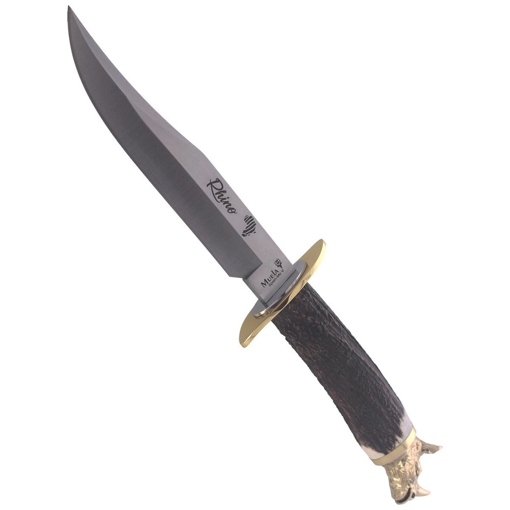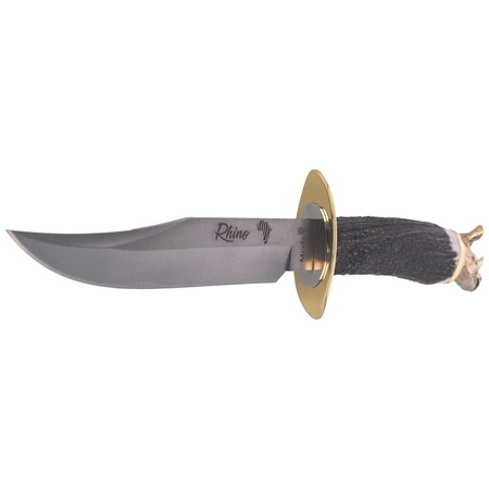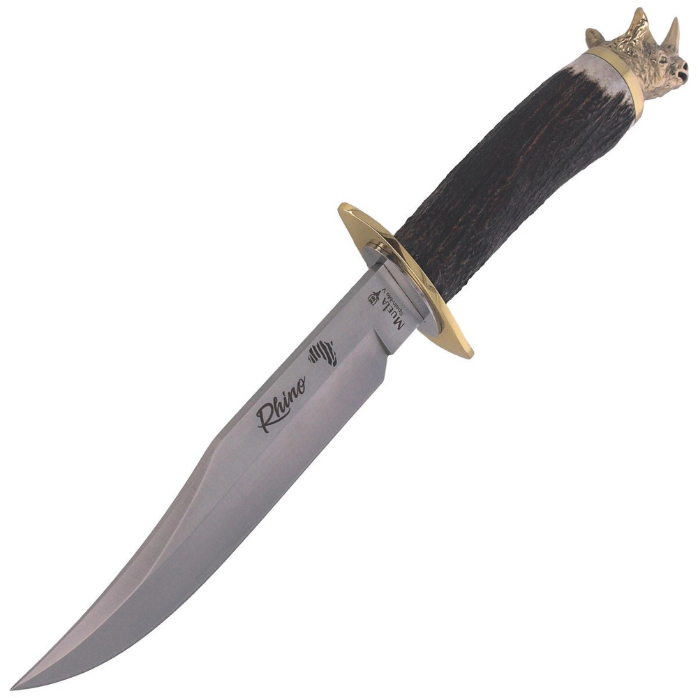 - RHINO-16BF wyjątkowy nóż firmy Muela z serii Big Five. Wysoka jakość materiałów staranne wykończenie detali. Nóż dla kolekcjonerów, miłośników polowań. Rękojeść poroże jelenia zakończone medalionem z motywem myśliwskim głową nosorożca. Skrzynka prezentowa