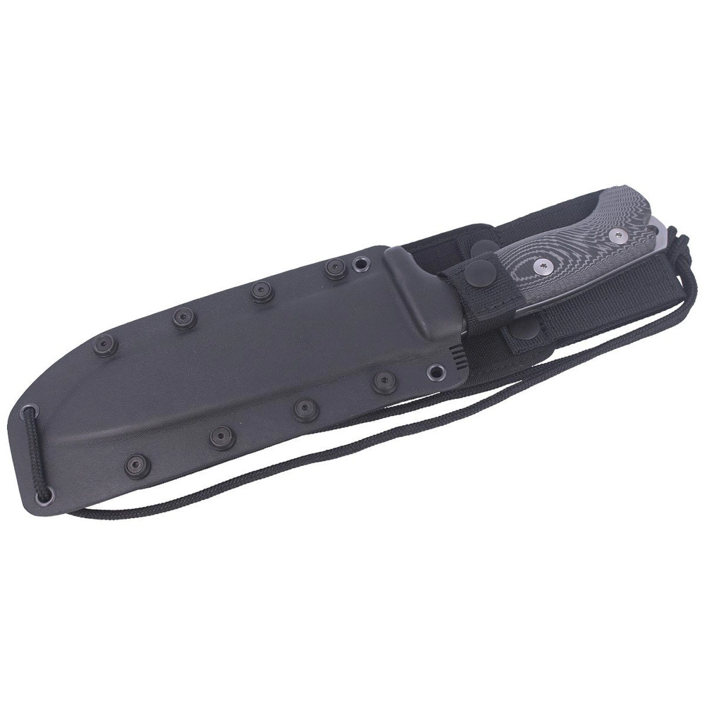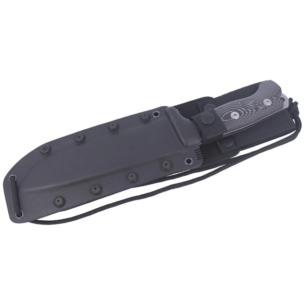 Pochwa - z tworzywa kydex łączonego z odporną na przetarcia, wodoodporną Cordurą w kolorze czarnym. Zabezpiecza przed wypadnięciem oraz ułatwia szybkie dobycie noża w każdej sytuacji. Zapinana na zatrzask dobrze zabezpiecza nóż przed wypadnięciem. Kompatybilna ze standardem M.O.L.L.E. umożliwia mocowanie kabury pod taśmy systemu MOLLE oraz przenoszenie na pasie lub oporządzeniu.