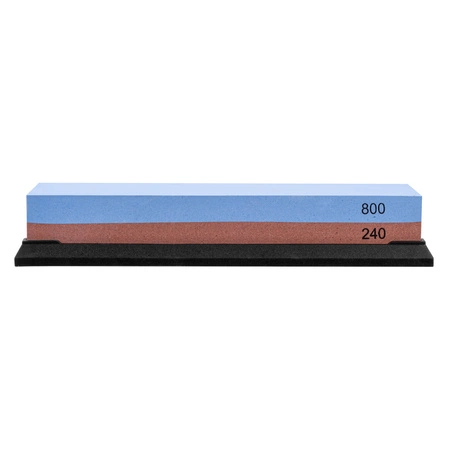 THE EDGE stone SHARP 240/800 to dwustronny kamień wodny z korundu do wstępnego ostrzenia i polerowania. Kamień ma dwie gradacje tj. fine 240 (pomarańczową) przeznaczoną do naprawy i wstępnego szlifowania oraz fine 800 (błękitną do ostrzenia właściwego oraz szybkiego podostrzania lekko stępionych narzędzi. Gradacje 240 i 800 świetnie sprawdzą się do ostrzenia noży i narzędzi outdooorwych.  Duża powierzchnia (180×60 mm) sprawia, że na kamieniu możemy komfortowo ostrzyć także duże narzędzia np. siekiery, maczety.