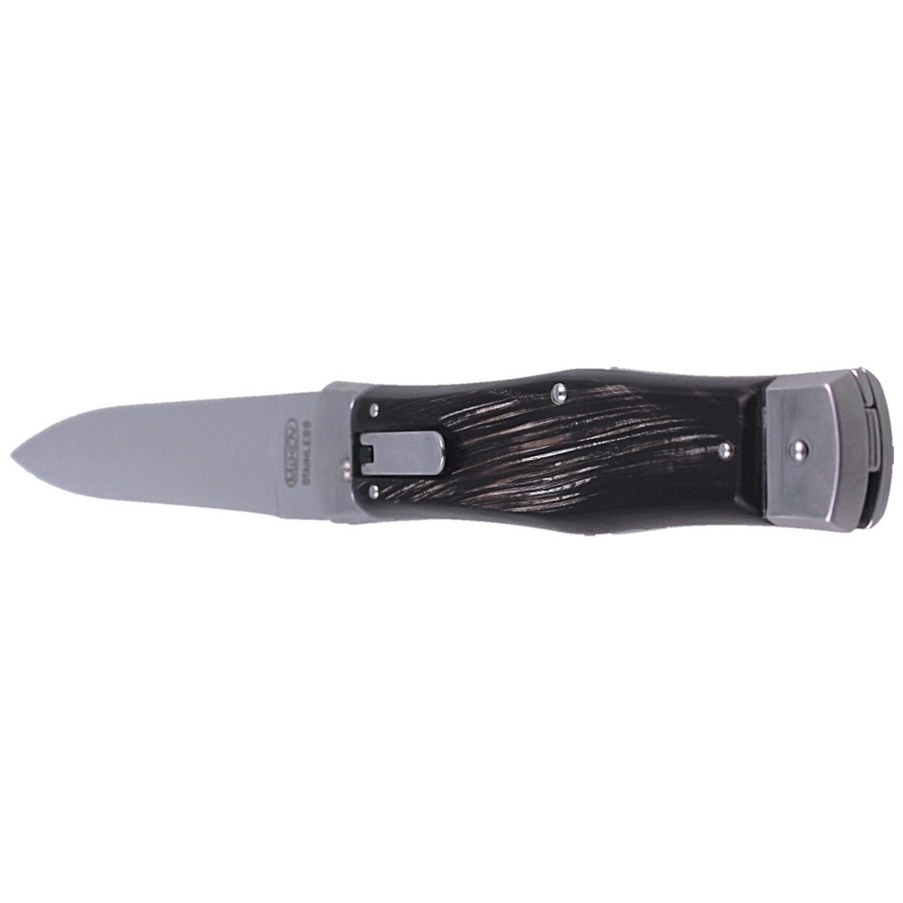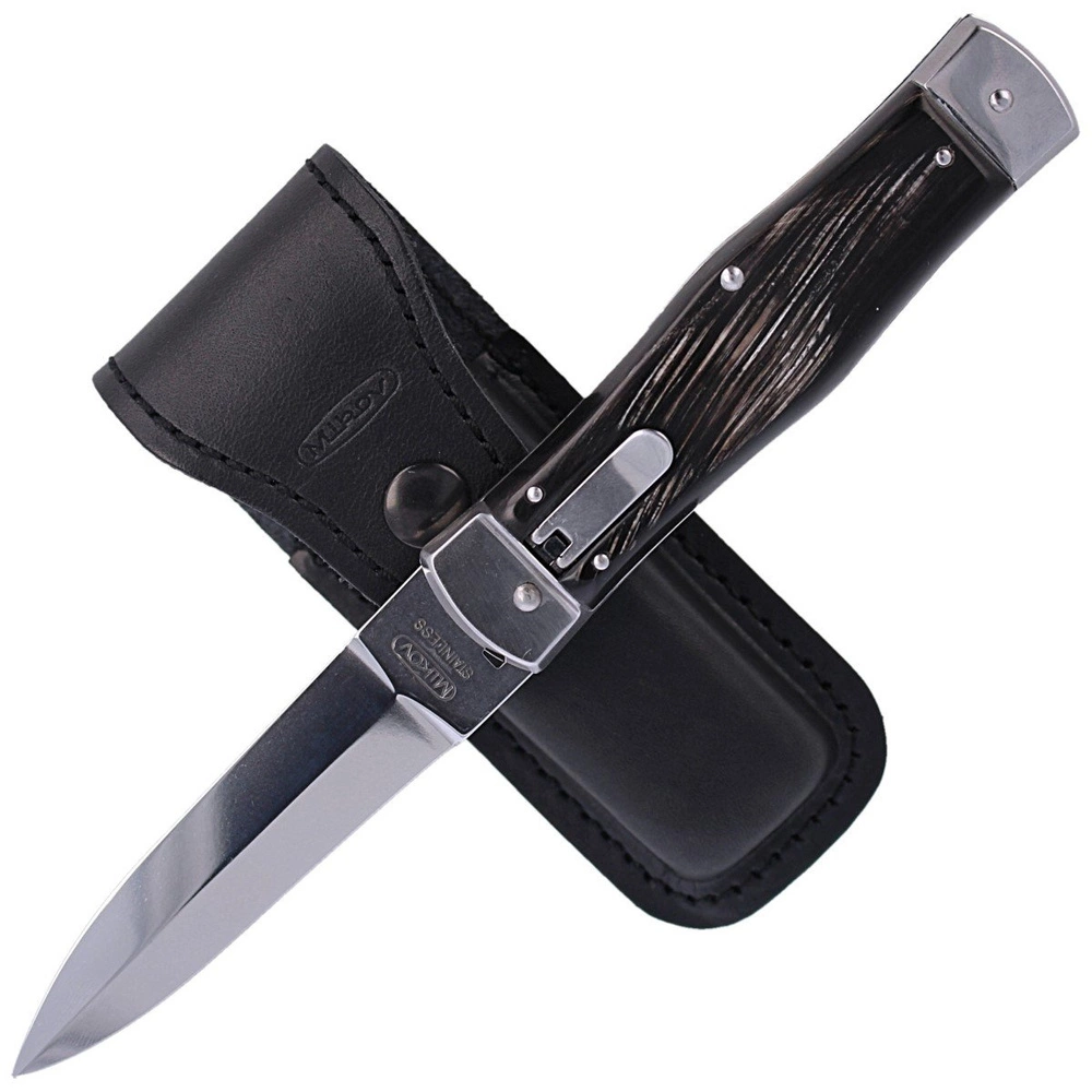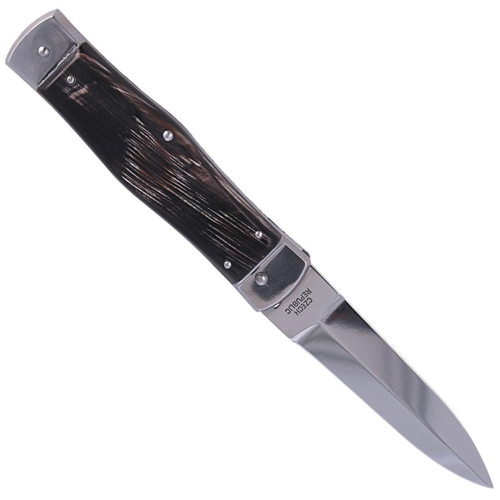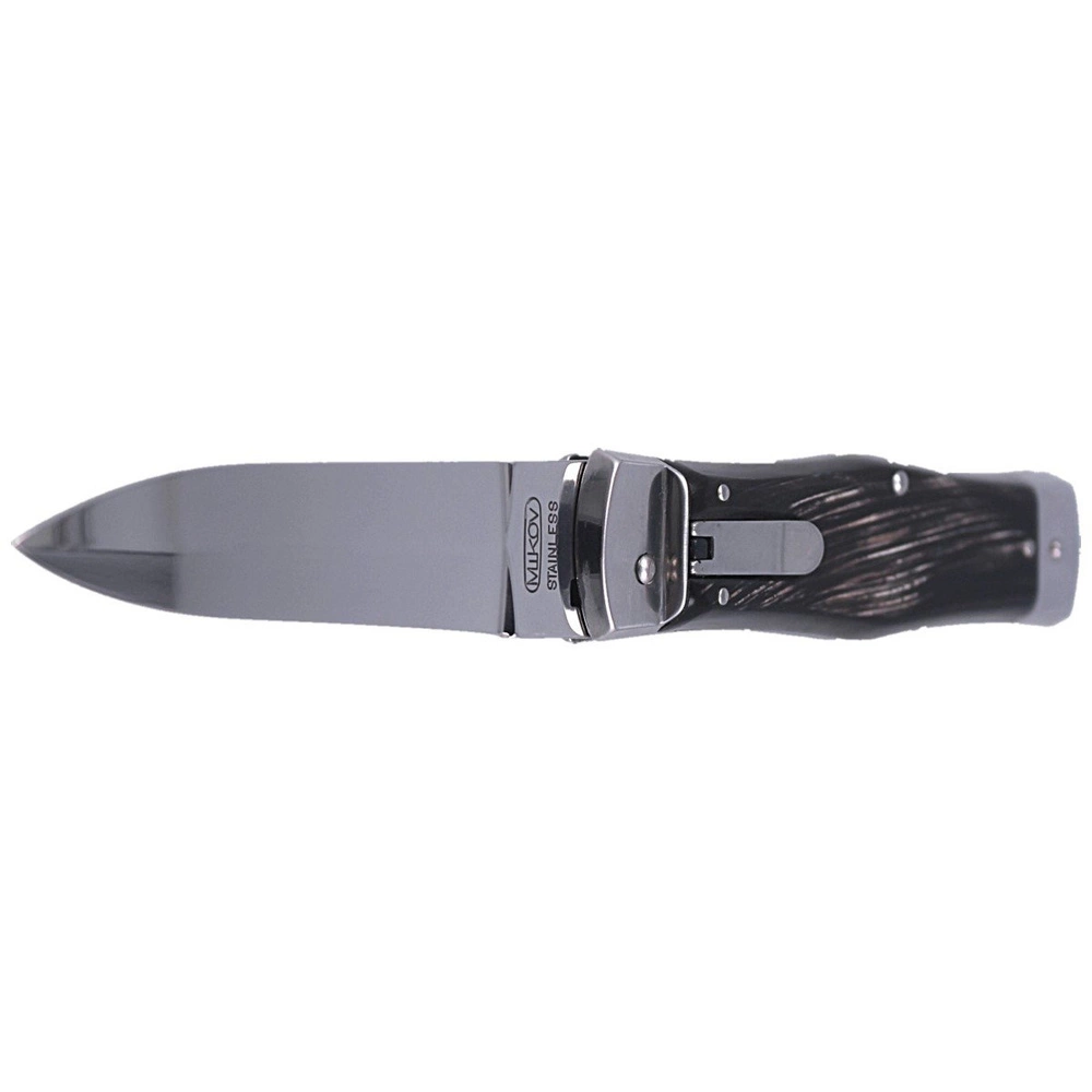 - PREDATOR BUFFALO HORN HAMMER, nóż automatyczny Mikov z naturalnymi okładkami z rogu bawoła, etui. Solidna, wytrzymała konstrukcja, dwie mocne sprężyny otwierające, charakterystyczny klik podczas otwarcia, odróżniają Predatora od innych noży sprężynowych..