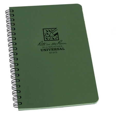 Notes wodoodporny Universal Polydura z taktycznej linii produktów amerykańskiej firmy Rite in the Rain. Umożliwia zapisywanie i późniejsze odczytanie notatek w każdych warunkach pogodowych, podczas deszczu, śnieżycy, a nawet pod wodą. Dzięki niewielkim rozmiarom i zaokrąglonym rogom mieści się w kieszeni bluzy mundurowej lub spodni.