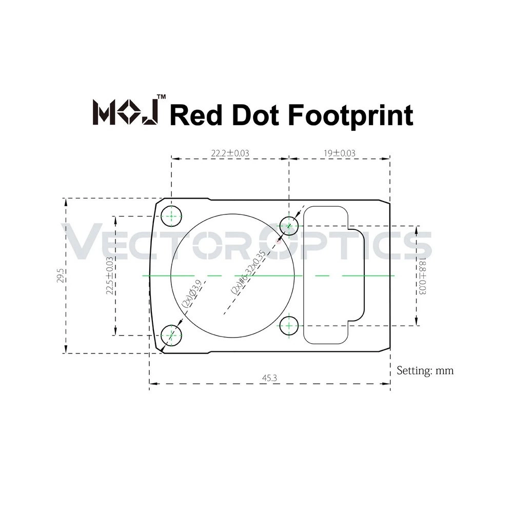 Kolimator zasilany wykonany z aluminium 6061-T6, zasilany jedną baterią CR2032. Wodoodporne urządzenie zostało wyposażone w funkcję automatycznego wyłączenia, które wydłuża żywotność baterii.