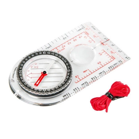 Kompas wykonany został z przezroczystego tworzywa sztucznego, a powierzchnię kompasu wypełniono płynem. Płynne wypełnienie pozwala precyzyjnie wyznaczyć kierunek północy. Dzięki, aż 4 skalom, obrotowej podziałce kątowej, oraz linijce bez większych trudności, dokładnie wyznaczymy kierunek marszu, a wbudowane szkło powiększające sprawia, że całość będzie czytelna.