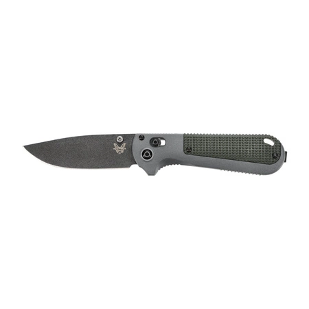 Benchmade 430SBK Redoubt ma profilowane okładziny z tworzywa Grivory w kolorze green forest. Grivory to laminat szklano-epoksydowy, który cechuje się niewielką masą, wysoką wytrzymałością mechaniczną, odpornością na działanie wielu kwasów i rozpuszczalników oraz nagłe zmiany temperatur. Dzięki agresywnie teksturowanej nakładce uzyskujemy niezwykle pewny i bezpieczny chwyt noża podczas pracy.