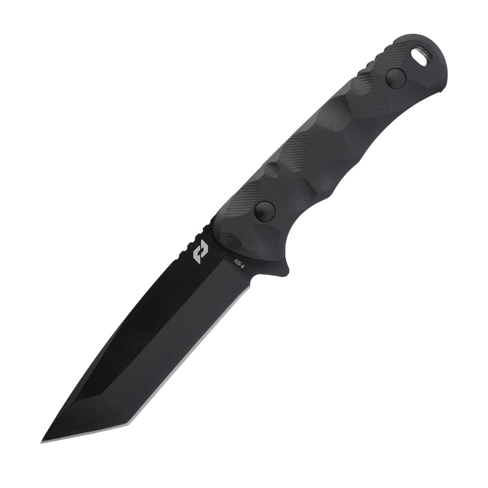 Stylowy nóż tanto z ostrzem stałym, o jednoczęściowej konstrukcji Full Tang wykonanej ze stali nierdzewnej. Antypoślizgowe okładziny z polimeru G10, z nacięciami wpasowującymi się pod palce i wyraźną fakturą. U spodu posiada otwór do przewleczenia paracordu. W zestawie znajduje się pochwa z twardego polimeru, z uchwytem na pas.