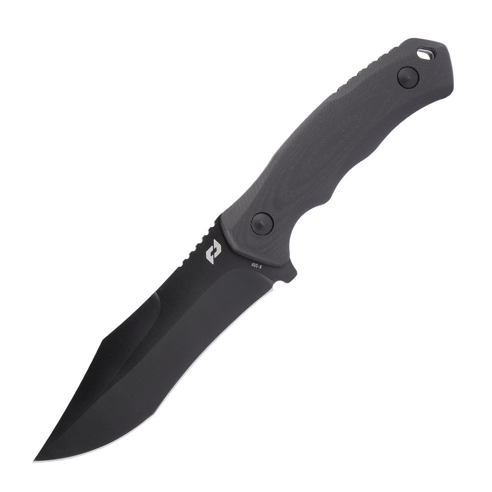 Solidny nóż z ostrzem stałym, o jednoczęściowej konstrukcji Full Tang wykonanej ze stali nierdzewnej. Antypoślizgowe okładziny z polimeru G10 z fakturą stylizowaną na drewno. U spodu posiada otwór do przewleczenia paracordu. W zestawie znajduje się pochwa z twardego polimeru, z uchwytem na pas.