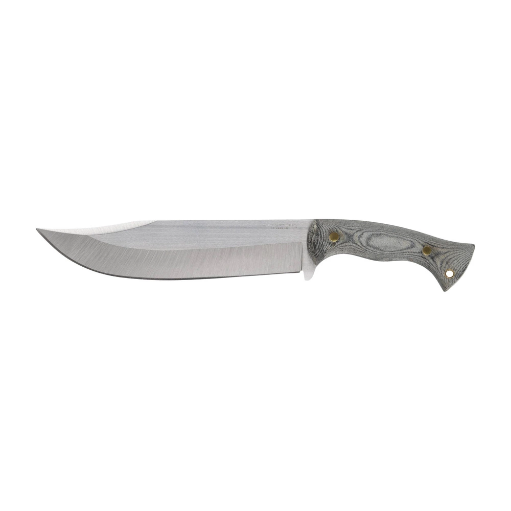 Nóż Plan A to groźne narzędzie zaprojektowane jako ostrze w stylu Bowie z rękojeścią w kształcie kukri. Świetnie nadaje się do siekania, prac polowych, biwakowania, wędrówek lub bushcraftu. Pochwa jest przystosowana do noszenia w prawej ręce, ale po kilku drobnych poprawkach można ją również założyć do noszenia na lewym biodrze. Pochwa przystosowana jest również do innych systemów pasów.