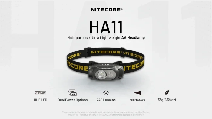 Nitecore HA11 jest zasilany tylko jedną powszechnie dostępną i ekonomiczną baterią AA. Ta wysoce wydajna latarka czołowa może działać do 40 godzin na najniższym ustawieniu, pokrywając cały dzień użytkowania. Użyj jednego przełącznika, aby włączyć czołówkę i przełączaj między trzema ustawieniami jasności, aby pokonać ciemność.