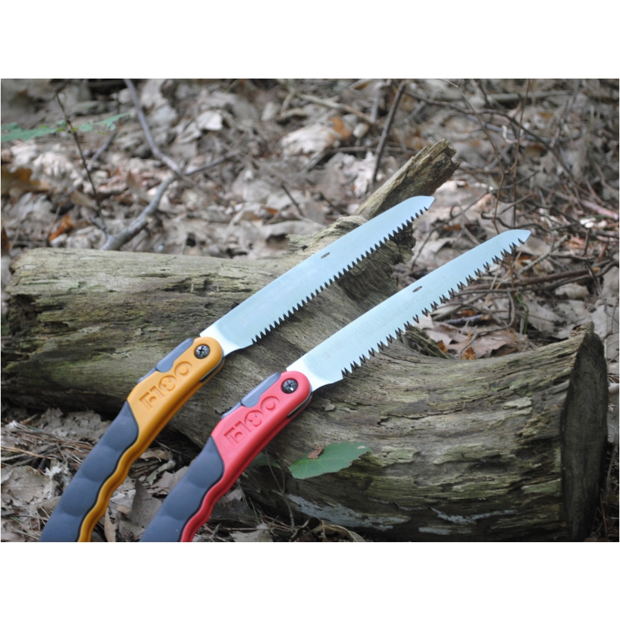 Nie znasz wyjątkowego uczucia piłowania Silky? Będziesz zaskoczony łatwością cięcia dzięki skokowi ciągnięcia. Szczególnie uważaj na palce: zęby są ostre jak brzytwa i szybko poruszają się po drewnie! Zęby pozostają ostre nawet po długotrwałym użytkowaniu. Zawsze będziesz mieć gładkie i czyste cięcia, po których drzewo może łatwo się zregenerować.