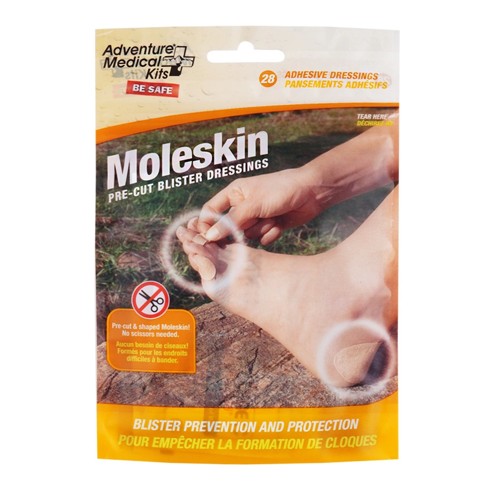 Moleskin to niezawodny opatrunek zapobiegający powstawaniu pęcherzy. Nałóż Moleskin na problematyczne miejsca przed rozpoczęciem wędrówki lub gdy tylko poczujesz tarcie na szlaku, a pęcherze staną się przeszłością. Zawiera chusteczki z alkoholem do przygotowania powierzchni.