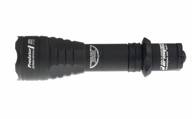 Armytek Predator z zielonym ledem. Latarka świetnie sprawdzi się do nocnej nawigacji i polowań. Ponadto zielony kolor nie zakłóca nocnego widzenia.