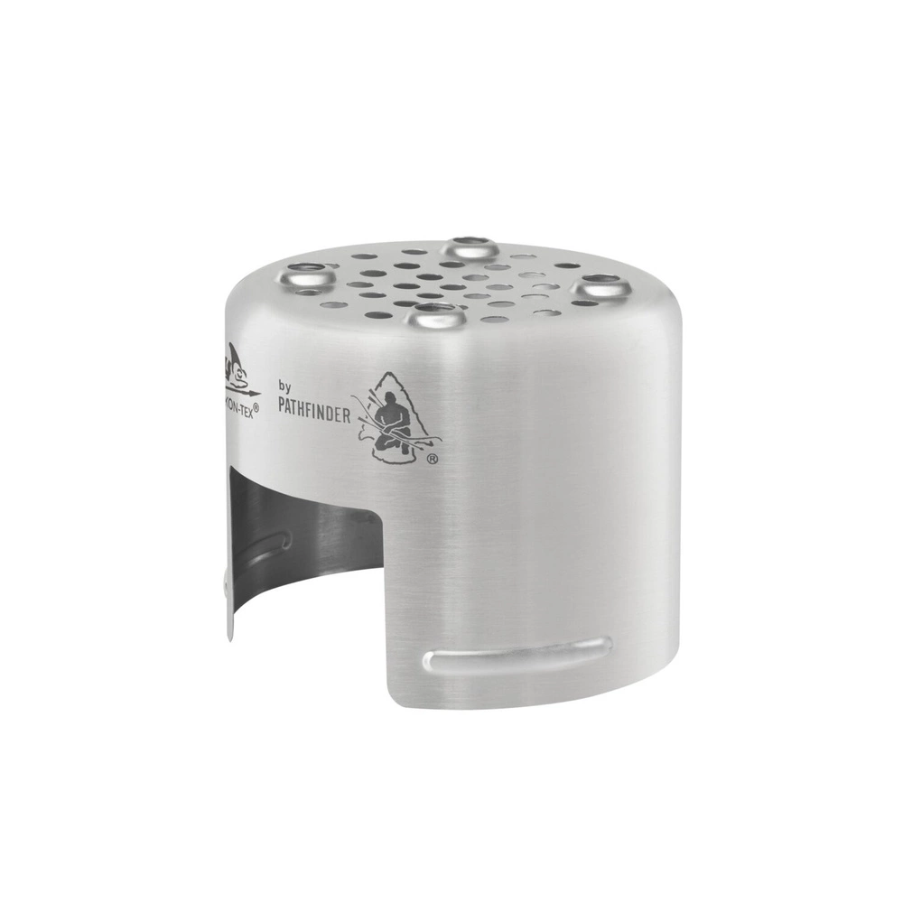Kuchenką, którą wygodnie zagnieździmy na czas transportu na butelce ma wymiar 12,5 x 9 x 9 cm i sprawdzi się do szybkiego gotowania w warunkach polowych. Może być zasilana paliwem stały oraz palnikami np. spirytusowymi.