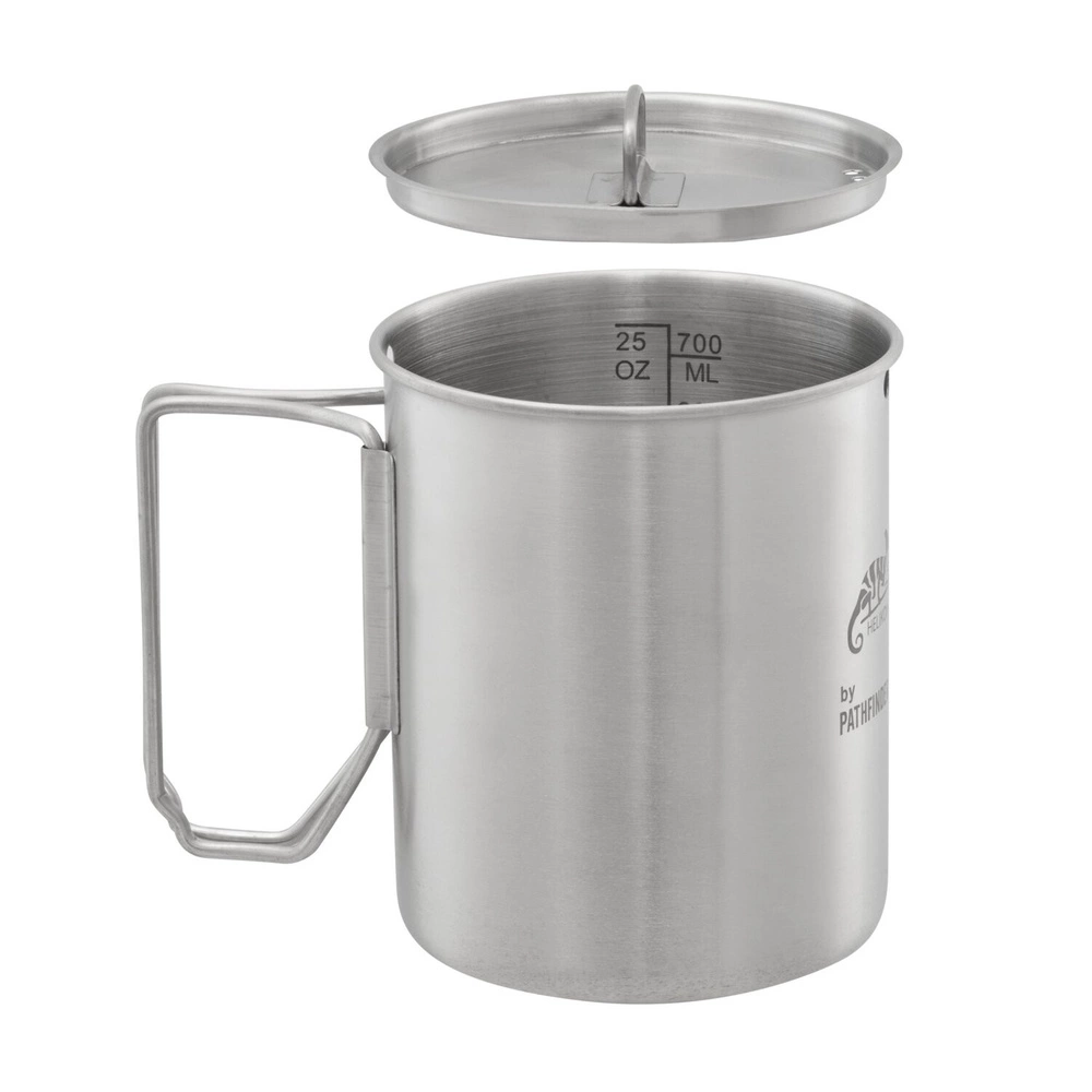 Kubek o pojemności 0,7l dobrze dopasowuje się do butelki tworząc świetny zestaw do przenoszenie i gotowania wody. Dopasowanie kubka oraz jego składane rączki zapewniają wygodny transport oraz oszczędność miejsca w plecaku. Kubek posiada pokrywkę dzięki czemu skraca się czas gotowania wody w kubeczku oraz zyskuje się ochronę przed zabrudzeniem napoju np. w czasie gotowania na ognisku.
