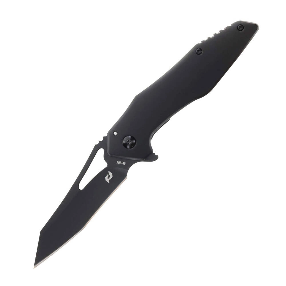 Rękojeść noża wykonana jest z wytrzymałego i lekkiego aluminium, które umożliwia pewny chwyt nawet w rękawicach taktycznych. Dzięki ergonomicznemu kształtowi, nóż ten gwarantuje komfort użytkowania. Uzupełnienie narzędzia stanowi metalowy klips po boku rękojeści, pozwalający na bezpieczne i wygodne przenoszenie przy kamizelce taktycznej lub pasku.