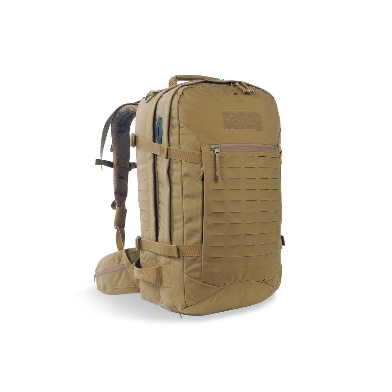 Zewnętrzne panele MOLLE umożliwiają łatwe dostosowanie plecaka do indywidualnych potrzeb przez dodanie różnorodnych kieszeni i akcesoriów. Ta modułowa konstrukcja sprawia, że plecak jest niezwykle funkcjonalny i może być konfigurowany w różnorodne sposoby, w zależności od specyficznych wymagań misji. Plecak wyposażony jest w przedział na system hydratacyjny, który jest kompatybilny z większością bukłaków, co jest kluczowe w sytuacjach wymagających długotrwałego wysiłku fizycznego. Opcjonalne pasy kompresyjne pozwalają na zredukowanie objętości plecaka, co jest przydatne w trakcie dynamicznych działań.