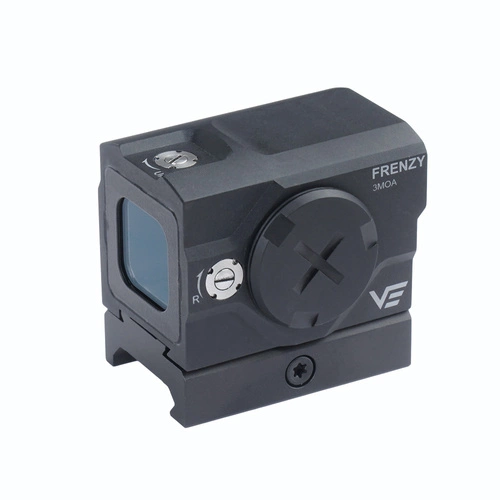 W Frenzy Plus został zamontowany czujnik ruchu umożliwiający większą kontrolę nad działaniem celownika. Kolimator może pracować w zakresie temperatur od -20°C do +55°C. W zestawie dołączono płytkę VOD do montażu na szynie Weaver. Kolimator posiada standardowe wymiary okienka celowniczego o powierzchni 18x20 mm. Płytka montażowa jest kompatybilna ze standardem VOD.