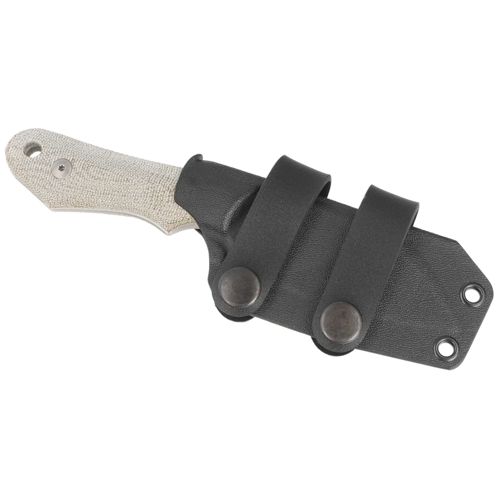 Pochwa - przedłużana, chroniąca głownię wraz z rękojeścią. Wykonana z kydexu. Mocowanie na pas lub do oporządzenia umożliwia przenoszenie noża w pozycji pionowej lub poziomej.