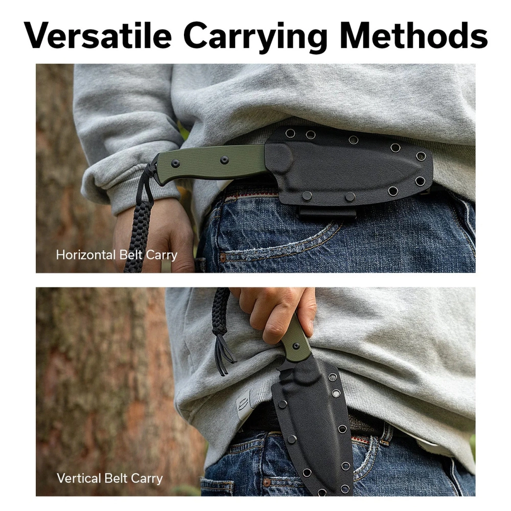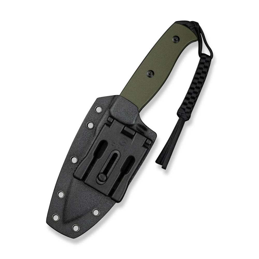 Pochwa - wykonana z czarnego kydexu bezpiecznie utrzymująca nóż na miejscu. Wyposażona w mocowanie T-Clip zaprojektowane przez Boba Terzuolę, umożliwia wielopozycyjne (prawe/lewe, pionowe/poziome) przenoszenie pochwy z stałym ostrzem na pasie lub oporządzeniu. T-Clip działający podobnie jak Tek-Lok pozwala na dopasowanie sposobu noszenia do indywidualnych preferencji użytkownika. Wzmocniony włóknem szklanym T-Clip, zawiera zestaw śrub wraz z parą plastikowych podkładek.