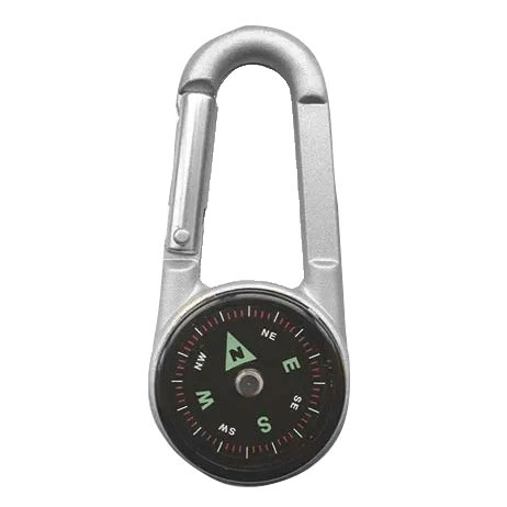 Karabinek z kompasem i termometrem - praktyczny dodatek do ekwipunku, wykonany z lekkich stopów cynku - bardzo wytrzymały, całkowicie nierdzewny, odporny na wodę. Gruba "szybka" z pleksi chroni instrumenty przed uszkodzeniem. Precyzyjna, obrotowa tarcza kompasu z podziałką - połączona na stałe z igłą magnetyczną. Ciecz niezamarzająca, kompas działa w ujemnych temperaturach. Termometr ze skalą od -20°C do 50°C.