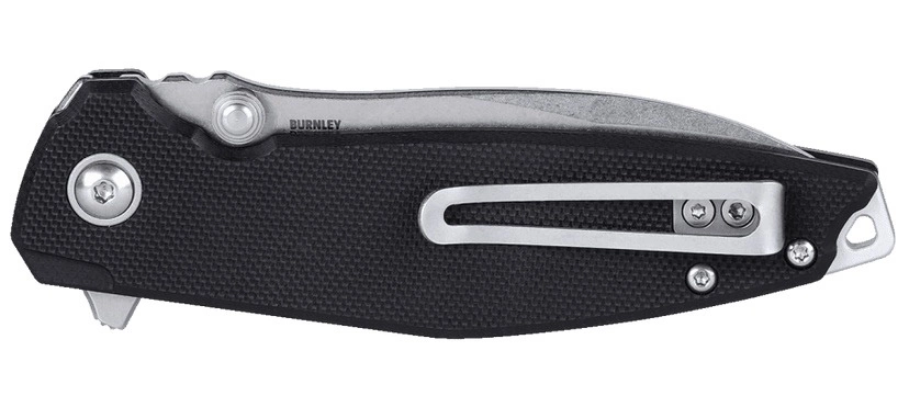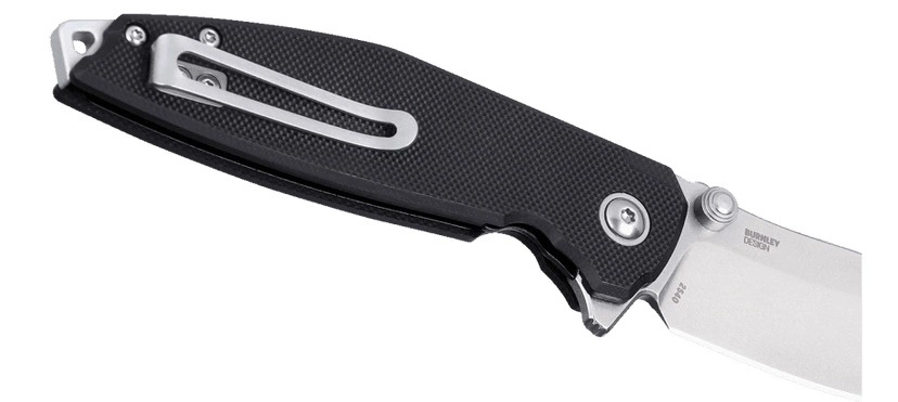 - Stalowy, sprężysty klips umożliwia wpięcie noża za pas lub części garderoby.