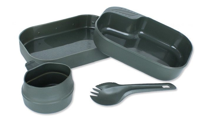 - pojemnik z zamknięciem (służy jako menażka, miseczki, talerze itp.)