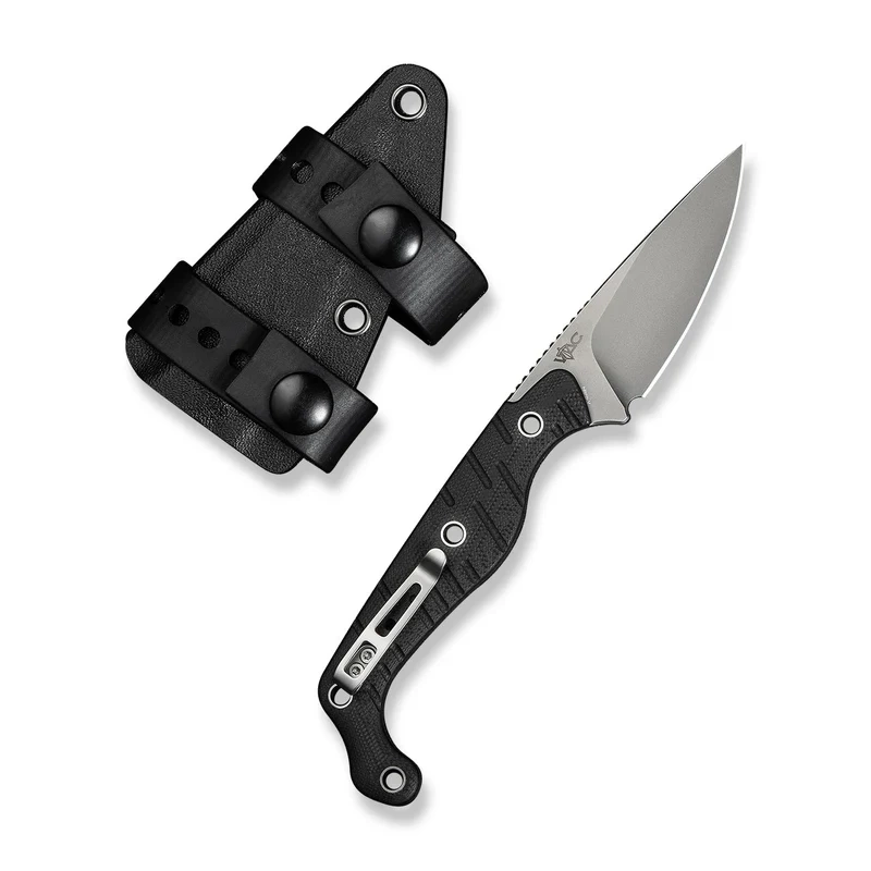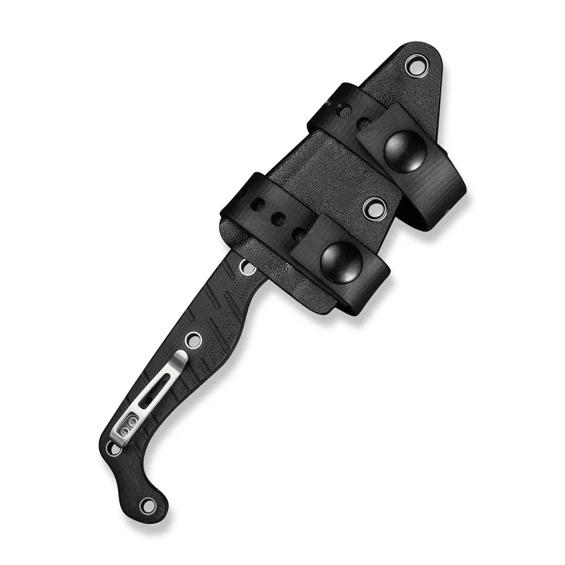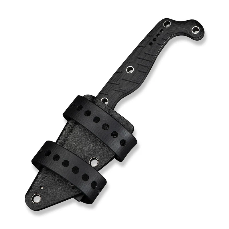 Rękojeść - wykonana z wytrzymałego kompozytu G10, znanego z odporności na warunki terenowe i znakomitej przyczepności. Teksturowana powierzchnia wspomaga chwyt w rękawicach lub mokrej dłoni, a ergonomiczne profilowanie zwiększa komfort użytkowania przy dłuższej pracy. Grubość 9 mm zapewnia stabilność chwytu, a otwór na linkę pozwala na zamocowanie paracordu lub dodatkowe zabezpieczenie. Wyposażona w obustronny klips, który umożliwia różne konfiguracje noszenia. W zestawie znajduje się pochwa z Kydexu – odporna na zużycie, pogodę i wilgoć, z paskami umożliwiającymi troczenie do pasa. Ta rękojeść to idealne połączenie funkcjonalności, trwałości i komfortu, stanowiące niezawodną bazę dla użytkowników poszukujących niezawodnego noża z głownią stałą.