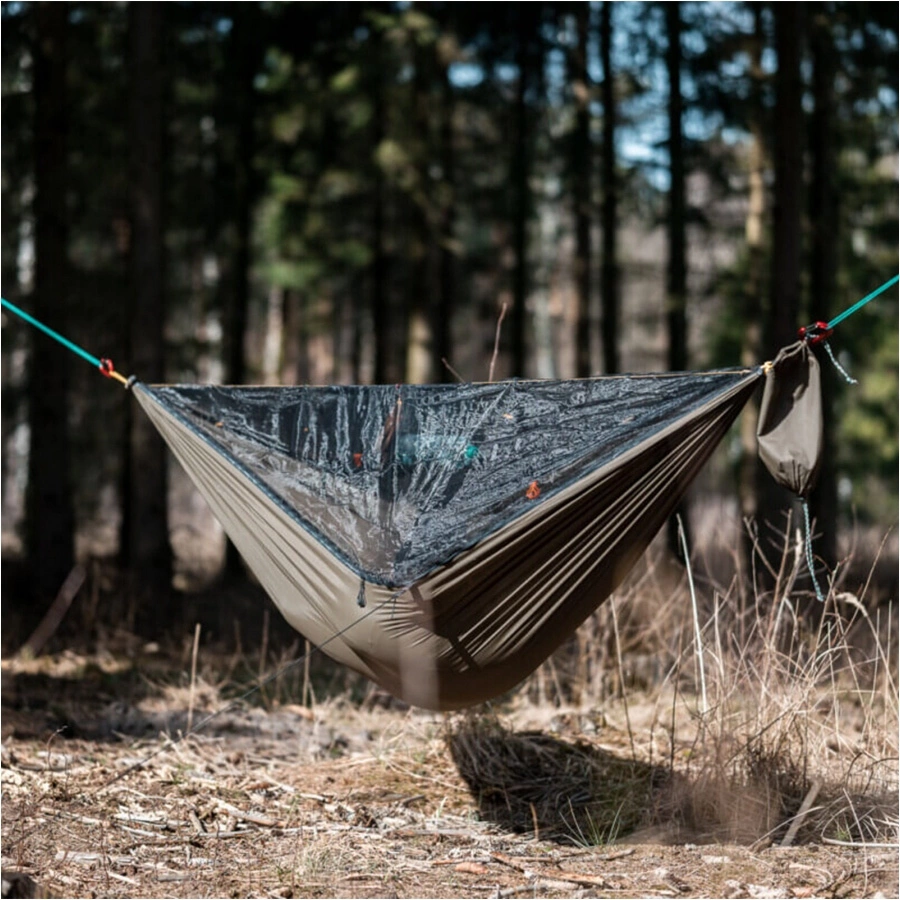Model Zorza I wyposażony jest w zintegrowaną, odpinaną moskitierę, chroniącą przed owadami i zapewniającą spokojny sen. Moskitiera wszyta jest z obu stron, co znacznie ułatwia korzystanie z hamaka. Dodatkowo, hamak pomieści karimatę lub materac, co pozwala na komfortowy odpoczynek nawet w chłodniejsze dni. Całość można schować w niewielkim worku transportowym.