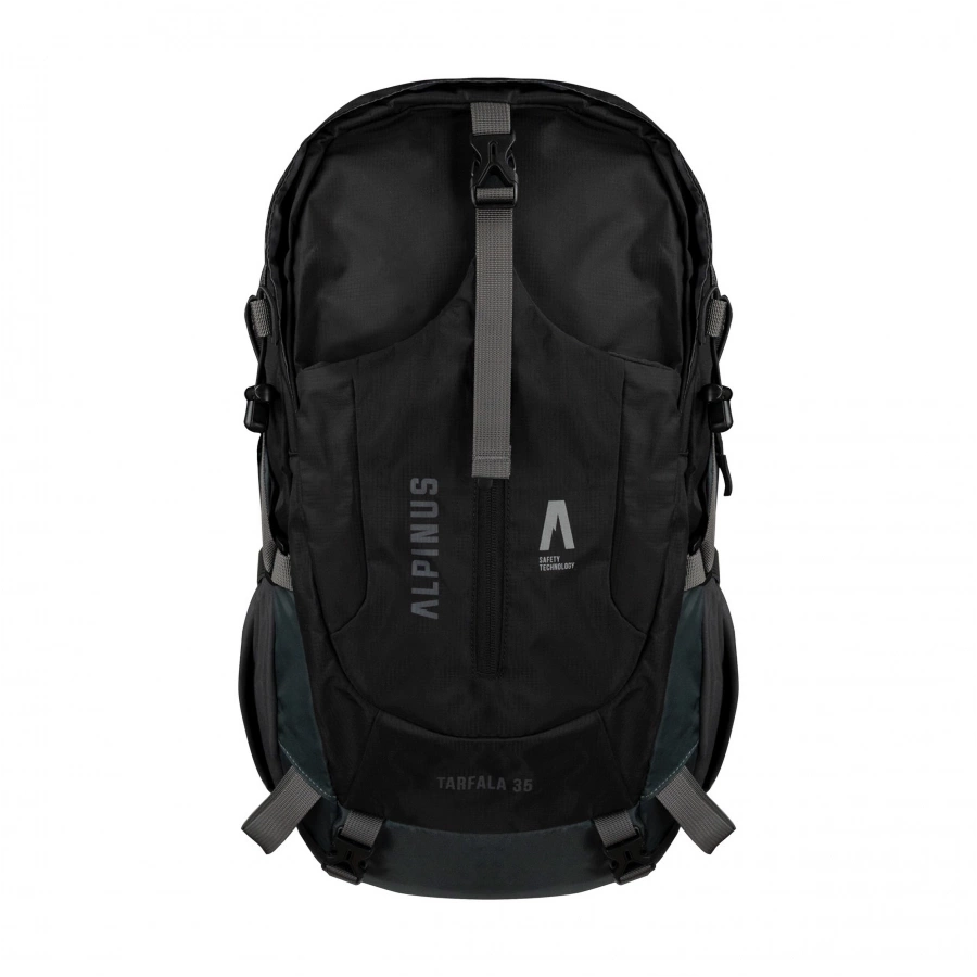 - Dodatkowe elementy: pas biodrowy z kieszonkami na drobne przedmioty, paski kompresyjne, elementy odblaskowe Alpinus Safety, pętelki do mocowania sprzętu turystycznego, klamry Duraflex i zamki SBS