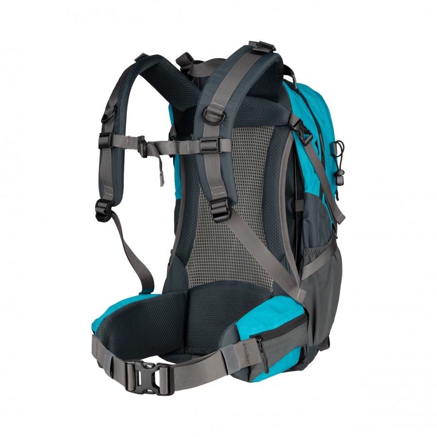 - Dodatkowe elementy: pas biodrowy z kieszonkami na drobne przedmioty, paski kompresyjne, elementy odblaskowe Alpinus Safety, pętelki do mocowania sprzętu turystycznego, klamry Duraflex i zamki SBS