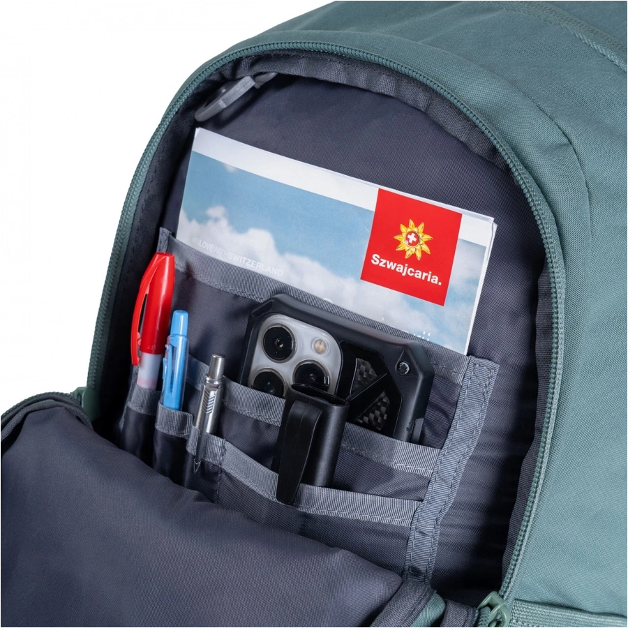 Wnętrze plecaka zostało zaprojektowane z myślą o maksymalnej użyteczności: oprócz dedykowanej kieszeni na laptopa, wyposażone jest w praktyczny organizer na dokumenty, długopisy i drobiazgi, co ułatwia utrzymanie porządku. Haczyk na klucze umożliwia szybki dostęp i eliminuje problem ich szukania. Solidne zamki SBS gwarantują trwałość i płynną pracę zamknięć, chroniąc Twoje rzeczy niezawodnie.
