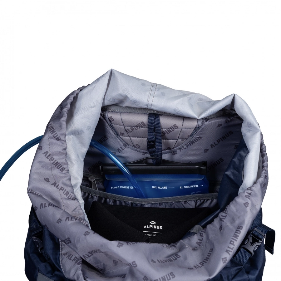 - System kompatybilny z systemem hydracyjnym: miejsce na bukłak i mocowania rurki, by pić w trakcie marszu bez konieczności zatrzymywania się.