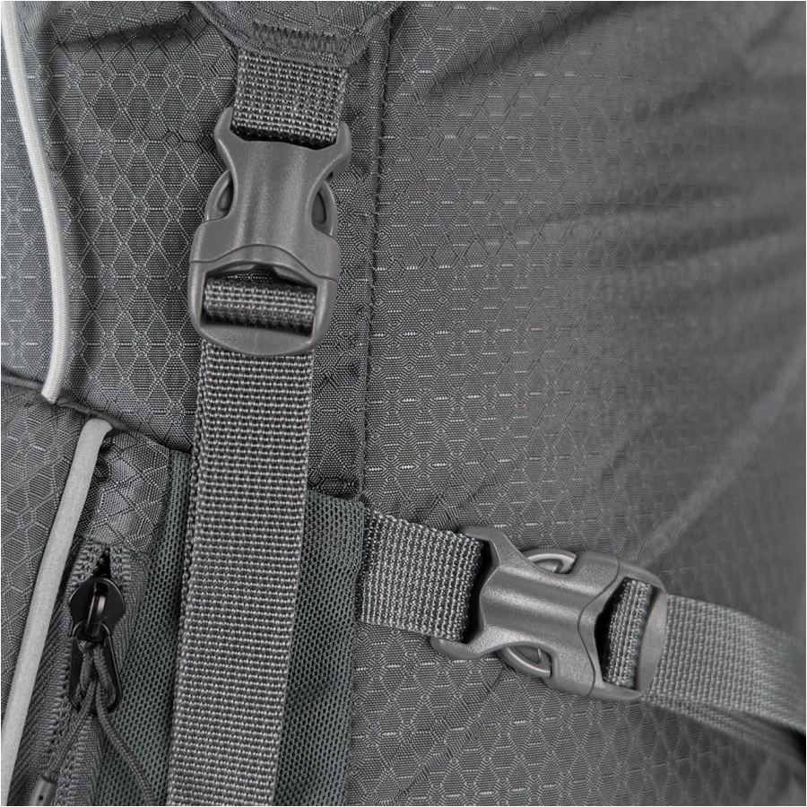 System nośny z aluminiowym stelażem i odizolowaną od powierzchni powierzchnią zapewnia doskonałą wentylację pleców, nawet podczas intensywnego wysiłku. Solidna tkanina nylonowa o strukturze ripstop zwiększa odporność na uszkodzenia i gwarantuje długotrwałe użytkowanie, a klapa z systemem zabezpieczeń minimalizuje ryzyko dostania się wody do środka. W razie nagłych opadów, ukryty w dolnym przedziale pokrowiec o jaskrawym, pomarańczowym kolorze, zadba o Twoją ochronę i widoczność, nawet w najbardziej niesprzyjających warunkach.