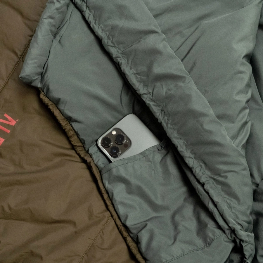 Oliwkowy kolor nadaje śpiworowi charakteru i idealnie wpisuje się w klimat survivalowy oraz bushcraftowy.