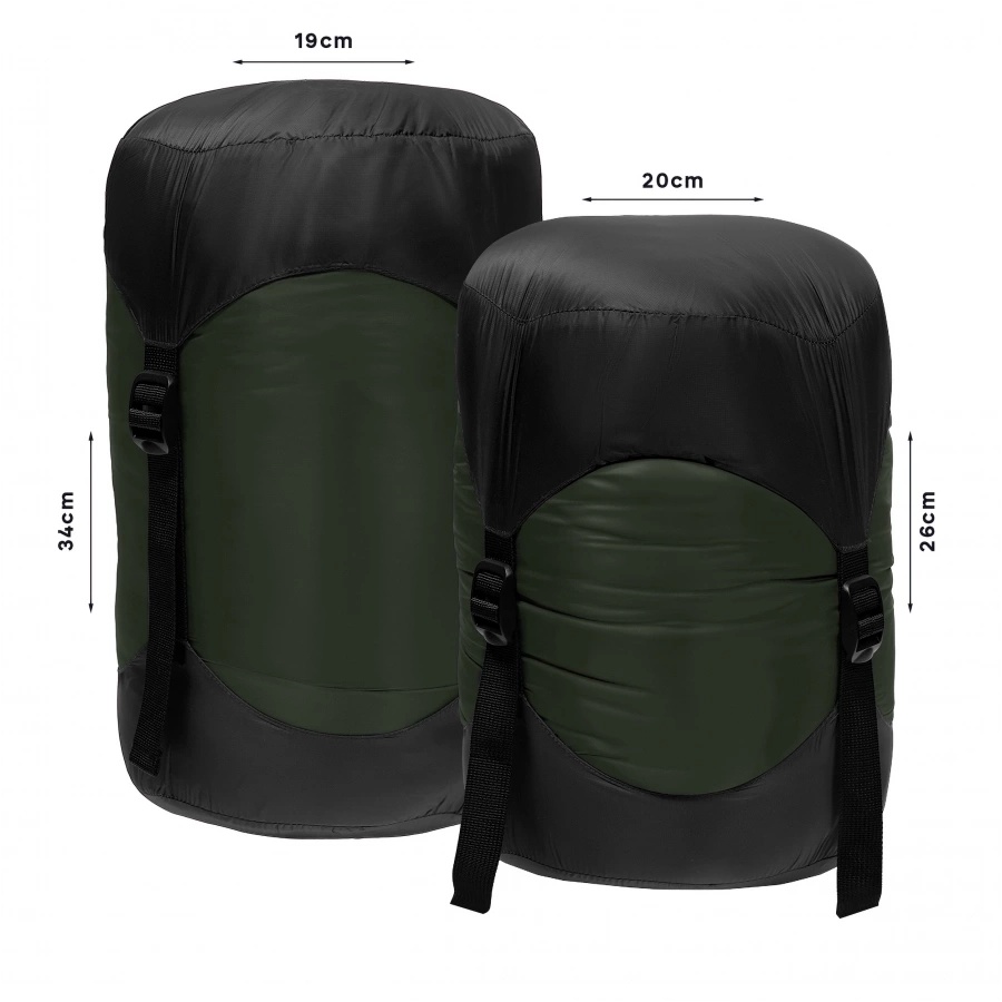 - Wymiary po spakowaniu: 34 × 19 cm (worek kompresyjny), po kompresji: 26 × 20 cm