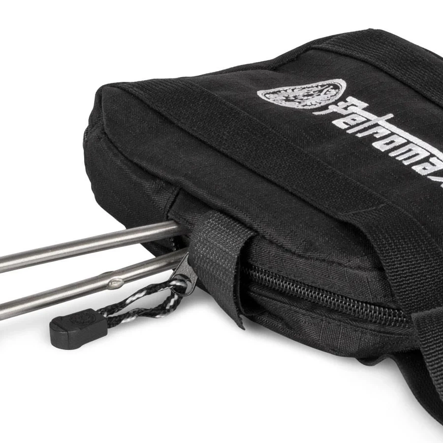 Spakujesz to: dodatkowe, małe przedmioty na Twoją przygodę, które po prostu schowasz w kieszeni na suwak, a także w dwóch kieszeniach z siateczki, np. tłok ogniowy lub środek do czyszczenia pierścieni. Tradycyjne logo Petromax jest wyhaftowane na górze, co oznacza ciągłą i doskonałą jakość i sprawia, że torba Petromax Waffle Iron Bag jest niezawodnym i solidnym towarzyszem podczas gotowania na świeżym powietrzu.