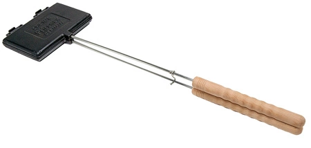 Z wygodnymi drewnianymi uchwytami. Drewniane uchwyty są wygodne w trzymaniu, a długi uchwyt zapewnia wystarczającą odległość od źródła ciepła. Ponieważ żeliwo ma sezonowane wykończenie, jest gotowe do natychmiastowego użycia. Aby wyczyścić, po prostu rozdziel połówki żeliwa za pomocą zawiasu. Nawiasem mówiąc, korzystasz również z doskonałych właściwości żeliwa podczas czyszczenia, ponieważ ma naturalny efekt nieprzywierania.