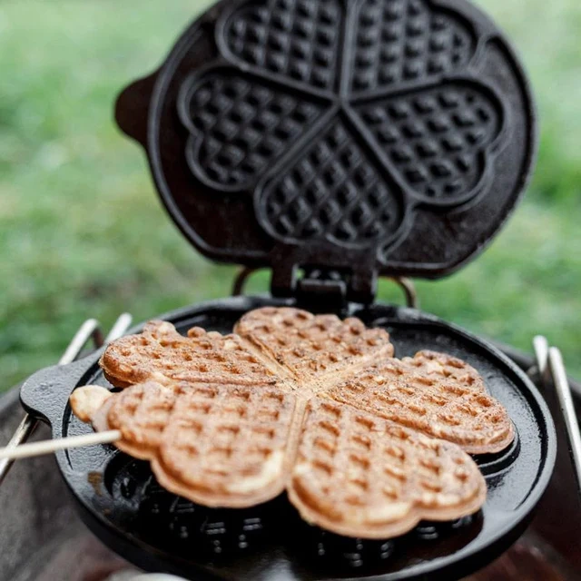 Niezależnie od tego, czy na grillu, czy przy ognisku, każdy gofr jest hitem. Gofrownica dodaje kolejny wspaniały deser do Twojej kuchni na świeżym powietrzu: wlej ciasto na gofry, obróć raz, jeśli to konieczne, a pyszne ciasto jest gotowe.