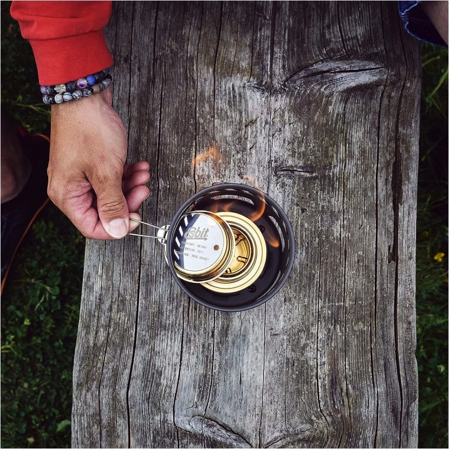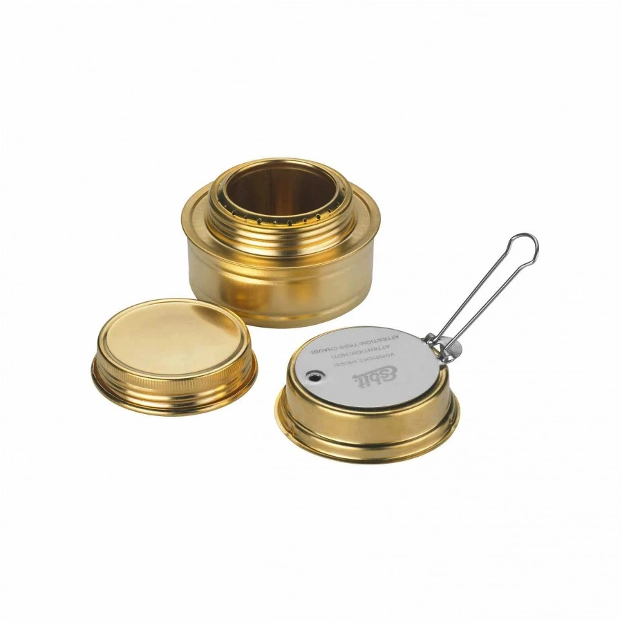 Palnik spirytusowy Esbit jest wykonany z mosiądzu i jest dołączony do każdego zestawu do gotowania spirytusowego. Można go napełnić 70 ml spirytusu metylowego . Oznacza to, że będzie się palił do 30 minut - w zależności od warunków początkowych i otoczenia. Zakrętka palnika spirytusowego jest w 100% szczelna, dzięki czemu możesz transportować paliwo bezpośrednio w palniku, gdy jesteś w podróży. Regulator płomienia ze składaną rączką umożliwia również łatwe zmniejszenie lub zgaszenie płomienia. Palnik spirytusowy i nasze kuchenki spirytusowe uzupełniają naszą ofertę i oferują opcję gotowania w podróży z dłuższym czasem przygotowania.