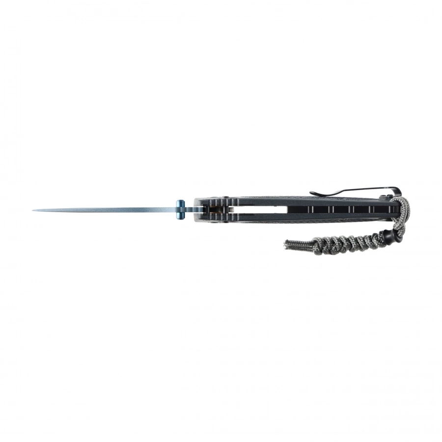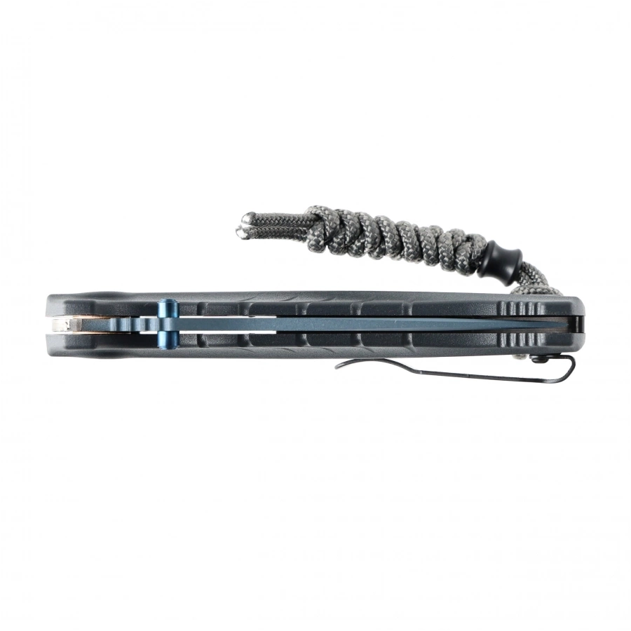 Klips z możliwością przełożenia umożliwia wygodne noszenie noża po obu stronach, a otwór na linkę oraz dołączony temblak z paracordu dają dodatkowe opcje mocowania i zabezpieczenia foldera.