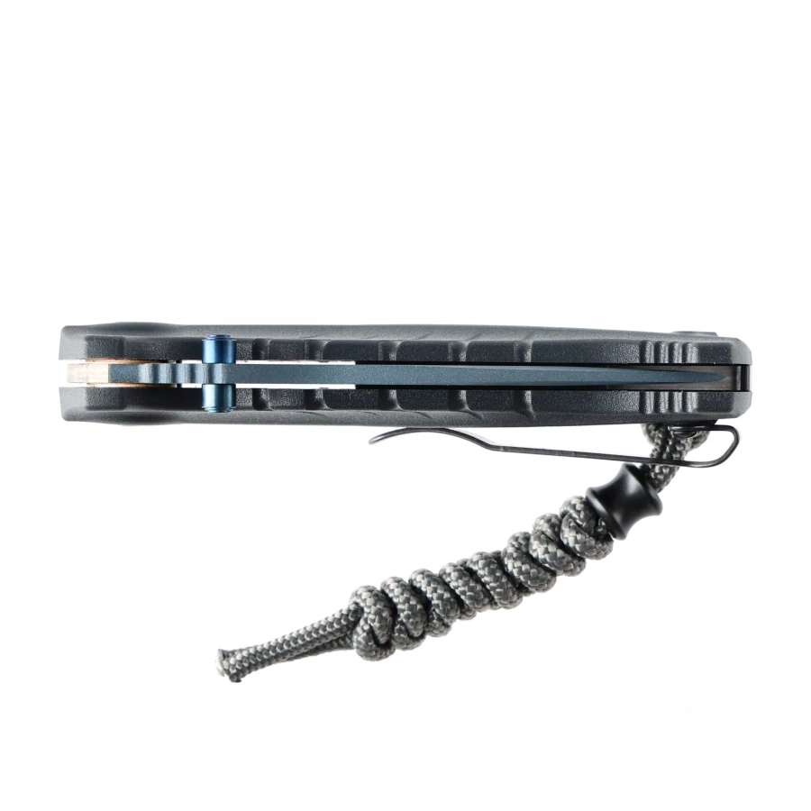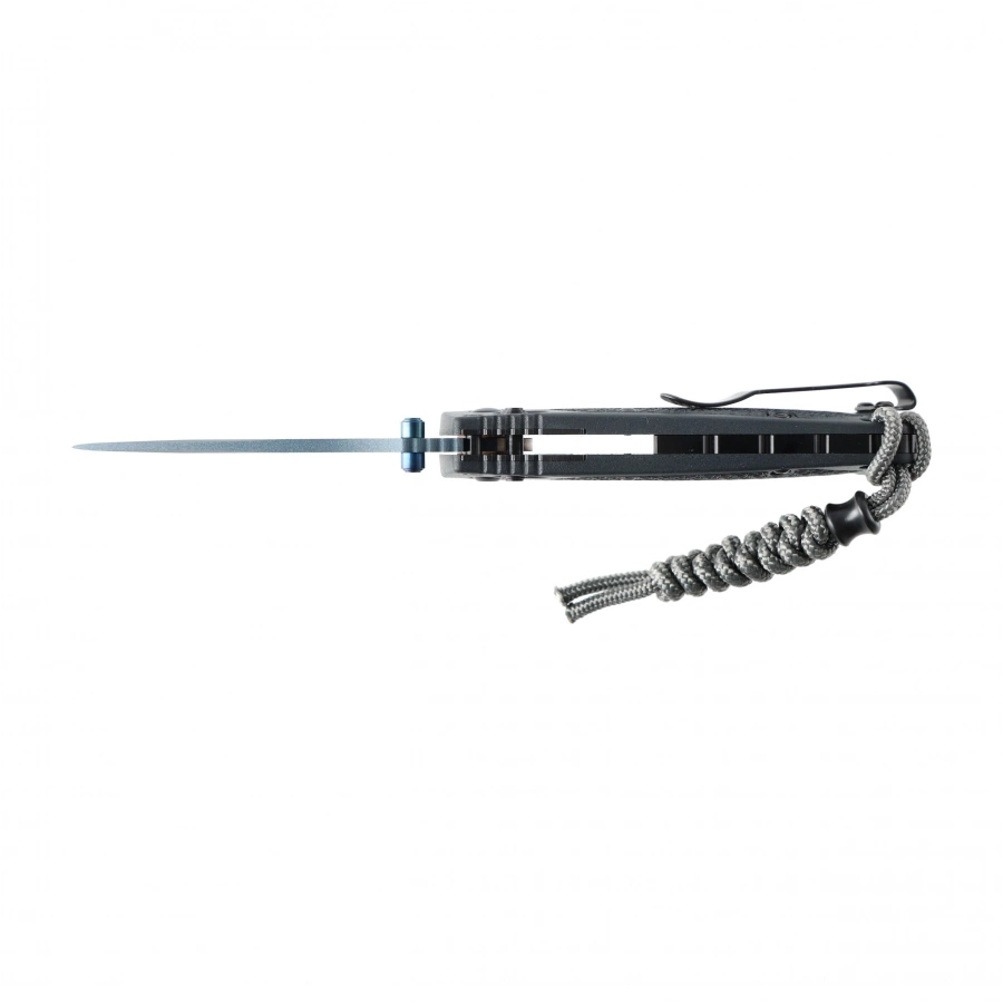 Nóż wyposażono w klips z możliwością przełożenia na lewą lub prawą stronę, co zapewnia uniwersalne i wygodne noszenie. W zestawie znajduje się również pomarańczowy temblak z paracordu, idealny do szybkiego wyciągnięcia noża z kieszeni lub przymocowania do plecaka czy kamizelki.