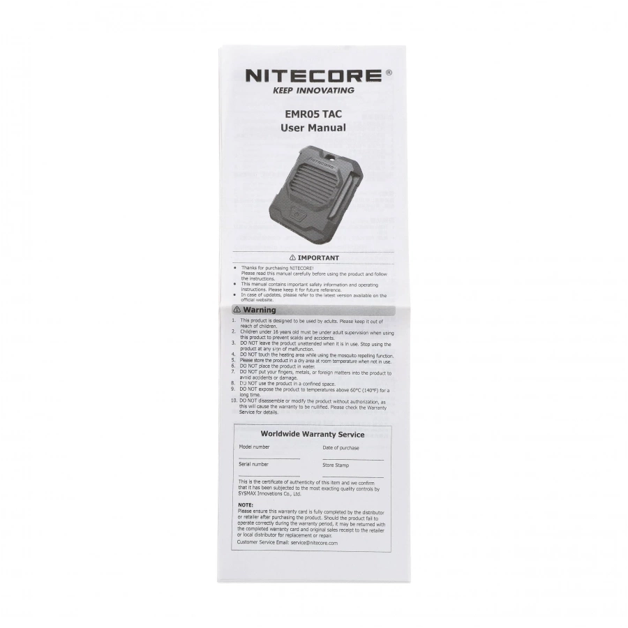 Nitecore EMR05 TAC to doskonały wybór dla wszystkich, którzy szukają prostego, skutecznego i mobilnego sposobu na ochronę przed owadami w plenerze.