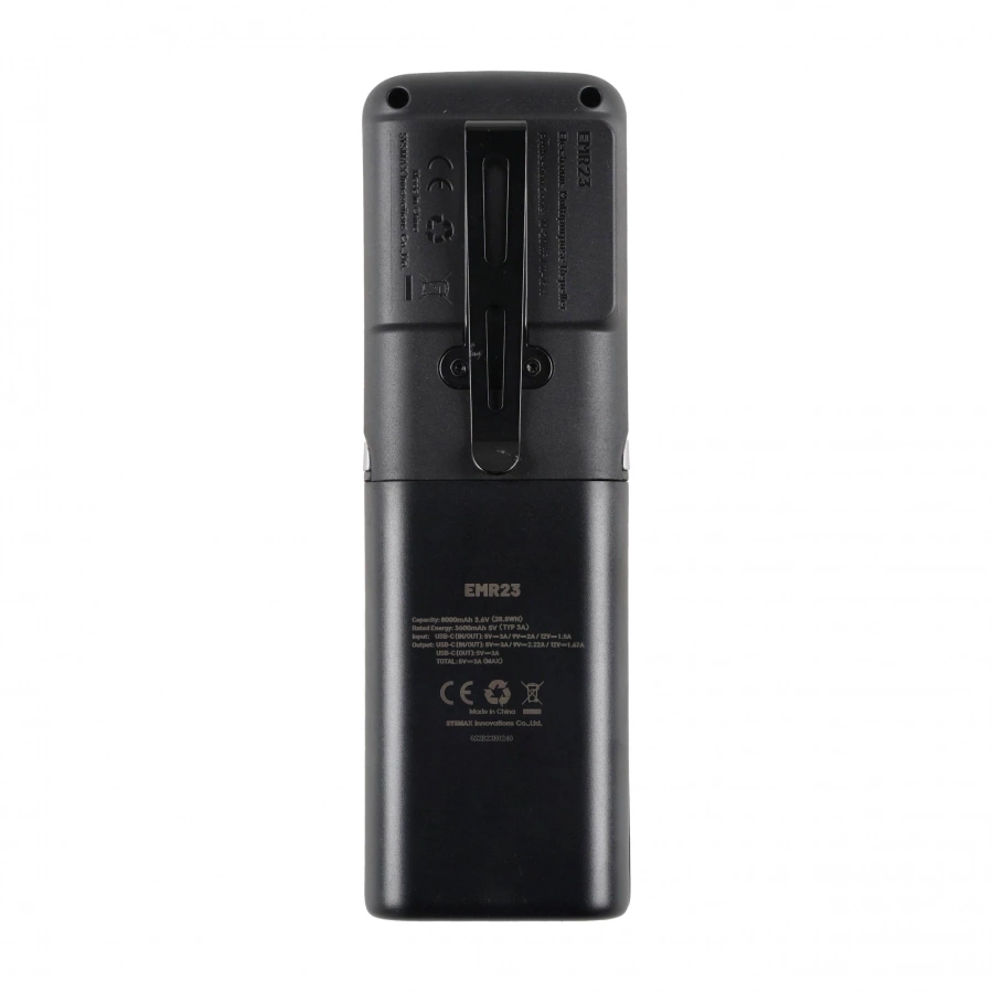 Dzięki kompaktowej, lekkiej konstrukcji EMR23 jest niezwykle łatwy w transporcie i obsłudze. Idealnie mieści się w plecaku, torbie czy sakwie, a dzięki intuicyjnemu sterowaniu jego uruchomienie trwa zaledwie kilka sekund. OLED-owy wyświetlacz pozwala szybko sprawdzić stan baterii i tryb pracy.