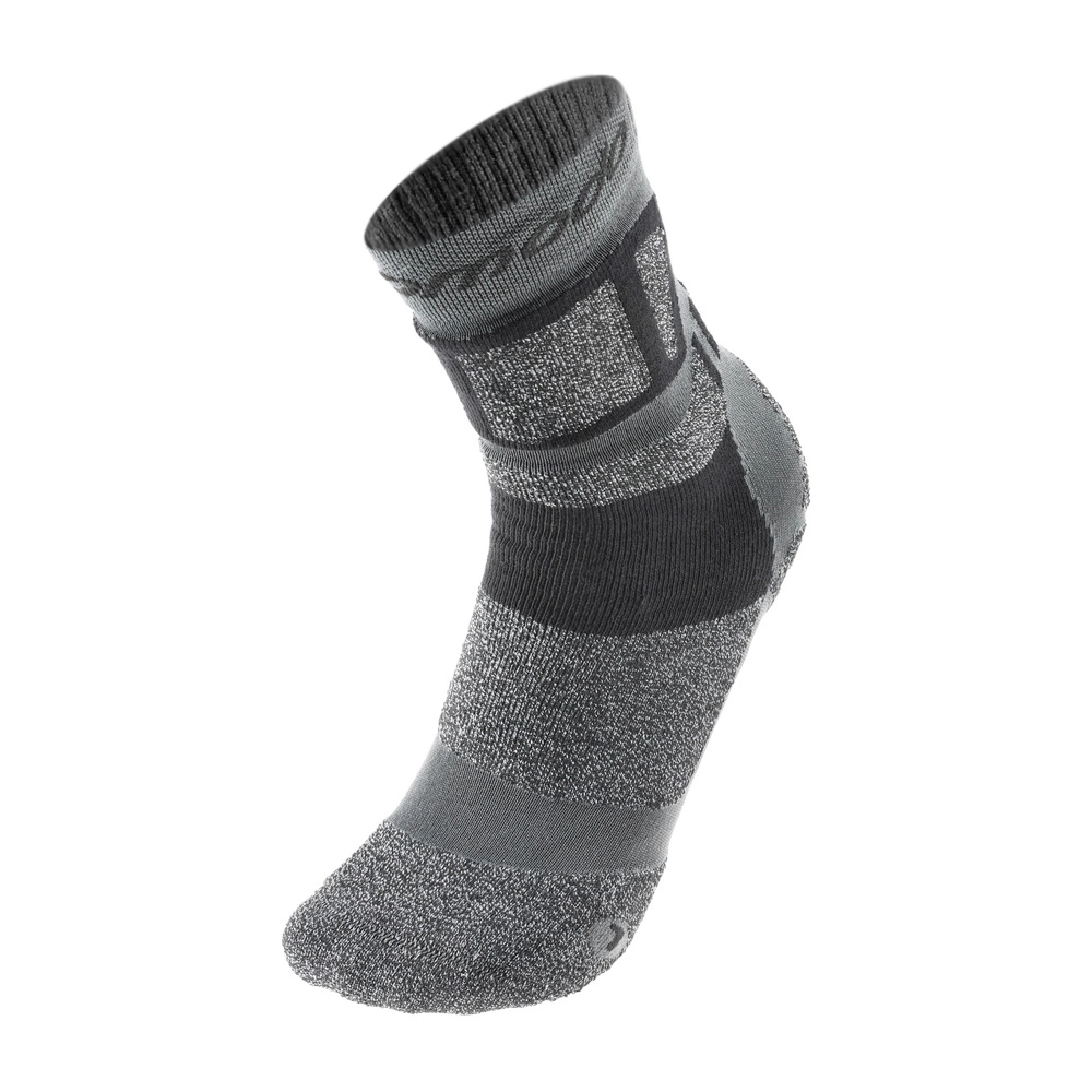 Skarpety Trekking STT zostały zaprojektowane z myślą o długotrwałym noszeniu – profilowanie oraz płaskie szwy eliminują ryzyko obtarć i ucisku, nawet podczas wielogodzinnych tras. Z kolei pogrubiona warstwa materiału w newralgicznych miejscach, takich jak podeszwa i pięta, wspiera naturalną amortyzację butów trekkingowych, poprawiając komfort na twardym podłożu.