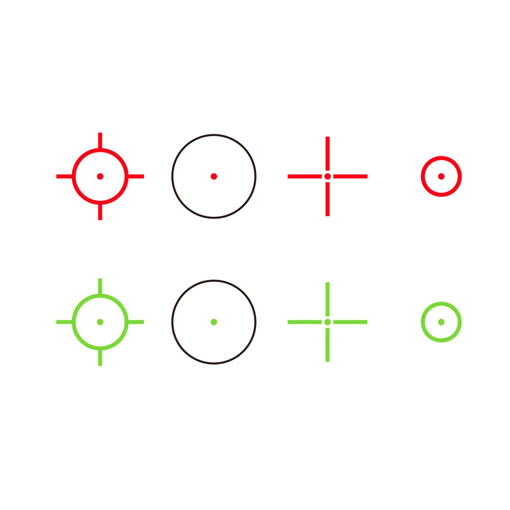Kolimator Omega typu reflex od Vector Optics wyposażony jest w aż cztery rodzaje znaków celowniczego 3,5 MOA: kropka, krzyż, okrąg oraz krzyż w okręgu. Wygląd celownika można wygodnie zmienić za pomocą suwaka. Sprzęt posiada dwa kolory podświetlenia - czerwony i zielony. Dla każdego koloru światła z boku obudowy kolimatora znajdują się przyciski do regulacji natężenia światła. Dzięki aż sześciu stopniom jasności urządzenie zapewnia dobrą widoczność nawet w trudnych warunkach.