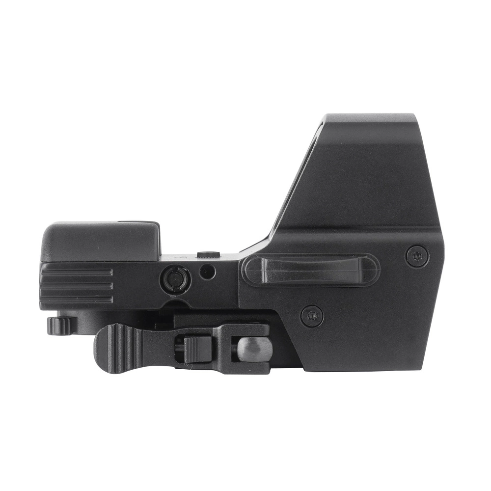 Okno celownicze o wymiarach 23 x 33 mm zapewnia szerokie pole widzenia. Kolimator posiada regulację w pionie i poziomie za pomocą śruby imbusowej, co pozwala na dostosowanie punktu celowania do wybranej platformy. Dzięki montażowi w standardzie Picatinny możliwe jest zestawienie kolimatora z powiększalnikiem lub innym celownikiem wspomagającym.