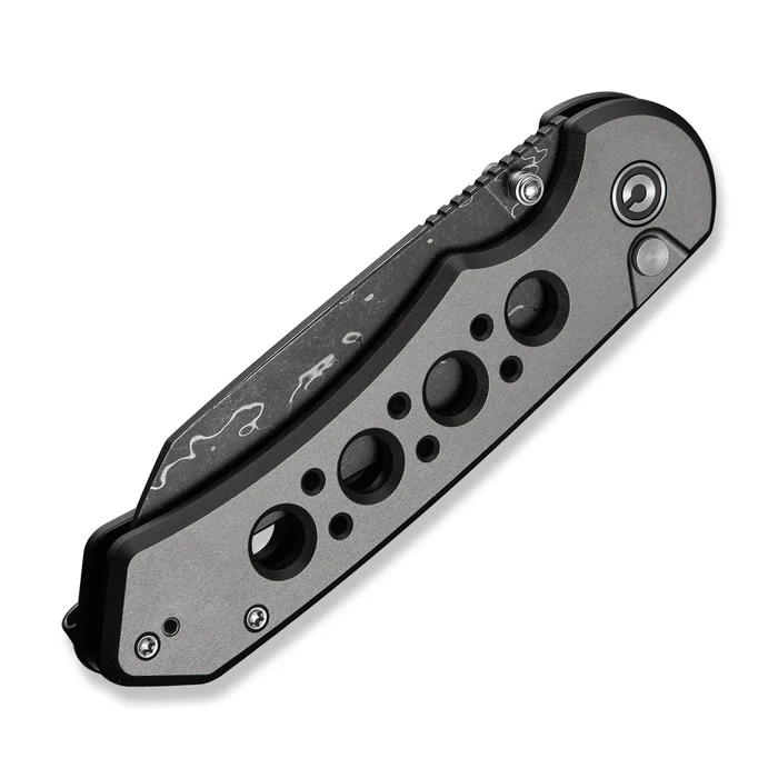 Głownia Wharncliffe ze stali Damascus, z wyraźnym, unikalnym wzorem uwydatnionym przez wykończenie Acid Etched, oferuje znakomitą kontrolę i precyzję. Prosta linia krawędzi w połączeniu z płaskim szlifem zapewnia efektywność i lekkość cięcia, a twardość 58–60 HRC gwarantuje długotrwałą ostrość i prostą konserwację. Ostrze otwierane jest za pomocą thumb studa i pracuje na łożyskach ceramicznych, oferując błyskawiczne rozkładanie jedną ręką – zawsze płynnie, zawsze bezpiecznie.