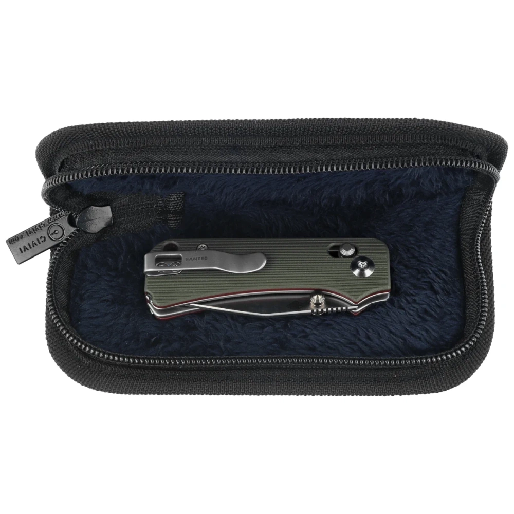 Futerał? Oczywiście. Każdy Baby Banter 2 TG otrzymuje miękkie, zamykane etui z logo Civivi, które zabezpiecza nóż w podróży i podczas przechowywania.