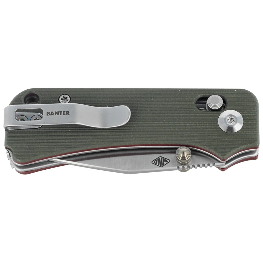 • Baby Banter 2 TG Green G10, Satin to najnowsza edycja kompaktowego foldera projektu Bena Petersena. Wytrzymała rękojeść z G10, głownia ze stali 14C28N, intuicyjna blokada crossbar lock. Pęseta i wykałaczka ukryte w rękojeści. Doskonałe narzędzie!