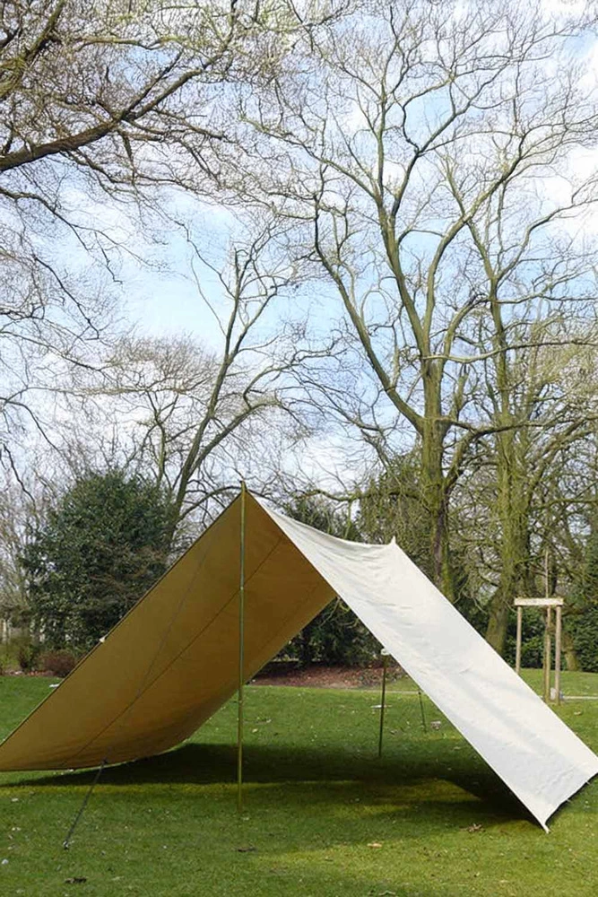 Naturalna tkanina bawełniana zapewnia doskonałą oddychalność, skuteczną ochronę przed słońcem i lekkim deszczem oraz wytrzymałość na intensywne użytkowanie. Idealna do stworzenia dodatkowego zadaszenia przy namiocie, przestrzeni wspólnej na kempingu lub jako samodzielne, lekkie schronienie w terenie.